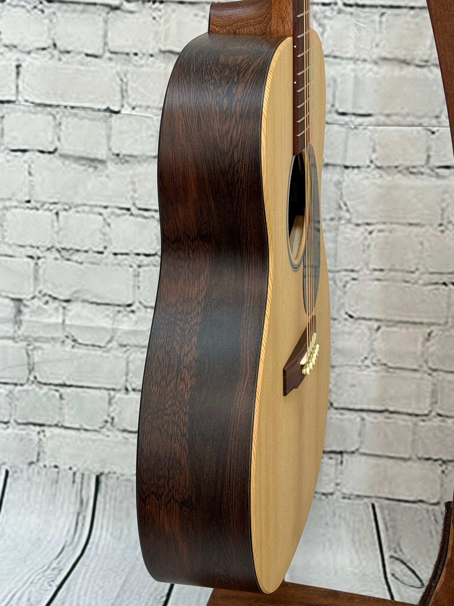 The X Series is made to play. The acoustic-electric 000-X2E Brazilian features a hand-rubbed satin spruce top with an elegant abalone pattern rosette and eye-catching Brazilian rosewood pattern high-pressure laminate (HPL) back and sides for added durability and looks, without sacrificing that classic Martin sound. Playability enhancements include a thinner fingerboard with a gently beveled comfort edge and refined string spacing, and a modernized bridge contour for a smooth and comfortable playing experience. It also features a select hardwood neck, fingerboard, and bridge for improved sound and sustain, and Martin E-1 electronics with a built-in chromatic tuner and volume, tone, and phase controls. The 000-X2E Brazilian provides balanced tone across all six strings, unplugged or plugged in, letting you play how you want, wherever you want. All X Series models come with a softshell case.