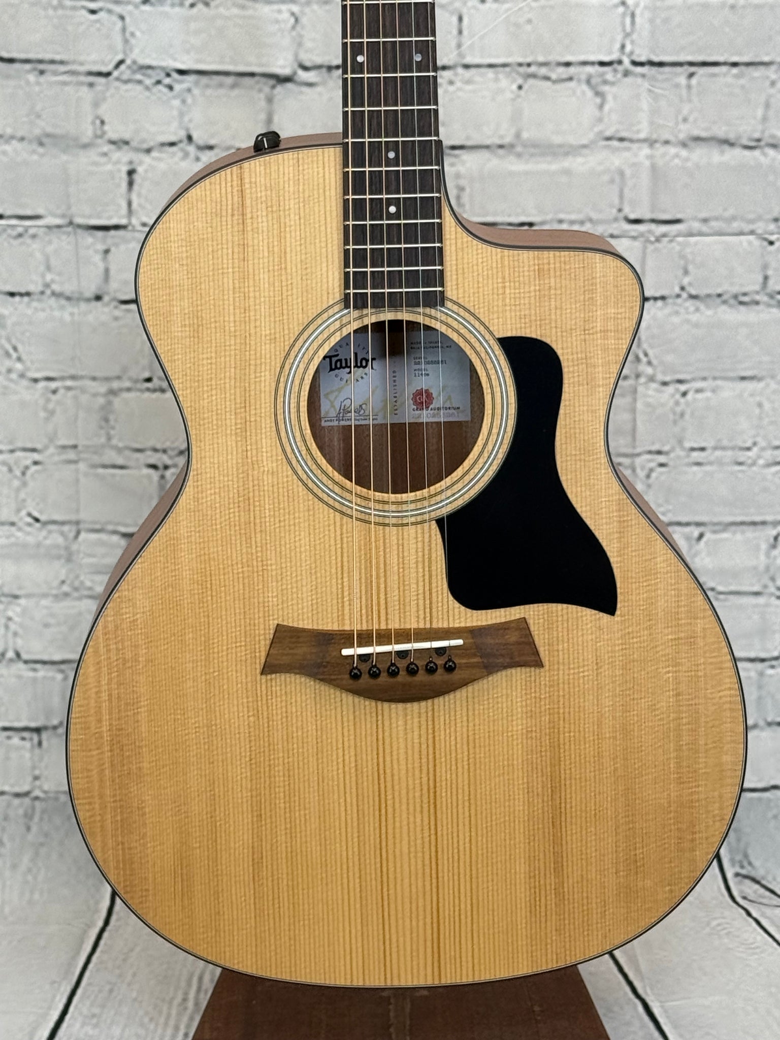 With exceptional playability, rich tone and all the features a player needs for everyday musical applications, the Taylor 114ce acoustic-electric guitar offers a great value for players of all skill levels. A top of solid torrefied spruce generates a clear, balanced midrange voice with plenty of projection for all purposes, whether you're practicing at home or playing shows with other musicians. Our special roasting recipe adds a touch of warmth and sweetness that you'd expect from a more mature, played-in guitar, while a tone-boosting interior bracing design dials up the response with louder volume, longer sustain and greater low-end presence. And with the slender Taylor neck profile, you're ensured easy, relaxed fretting no matter your playing style. It all adds up to a versatile experience with wide-ranging musical utility, whether it's your first guitar or the latest addition to your collection.