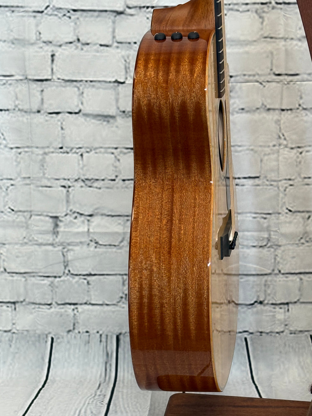 - Solid sapele back and sides for rich midrange voice