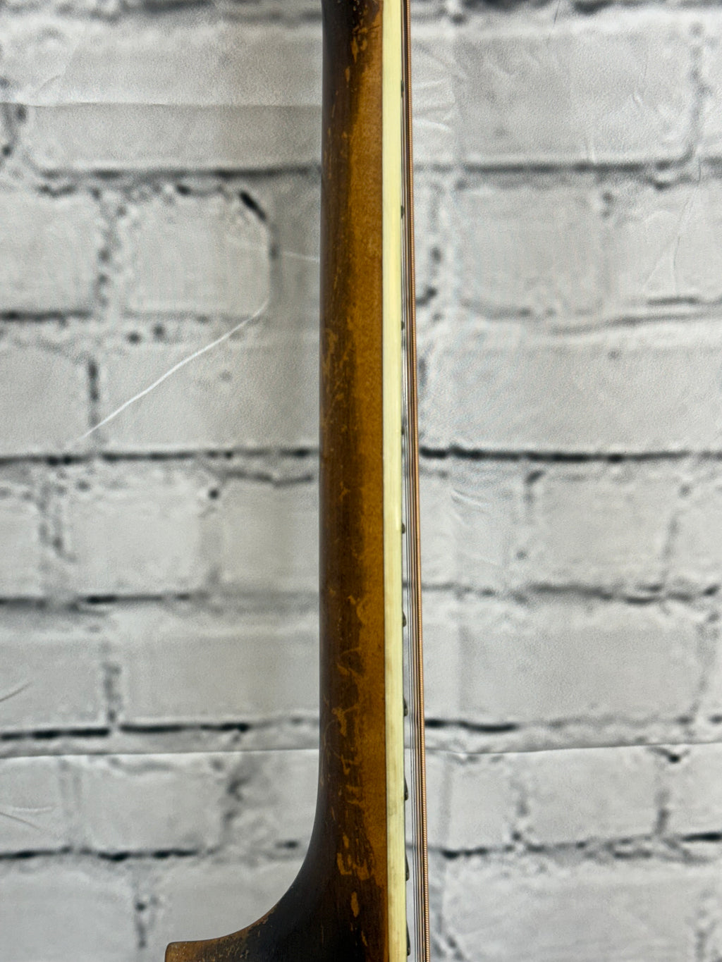 Used 1930 National Duolian with flat cut f holes, round neck and bound fingerboard. Comes with a hardshell case.