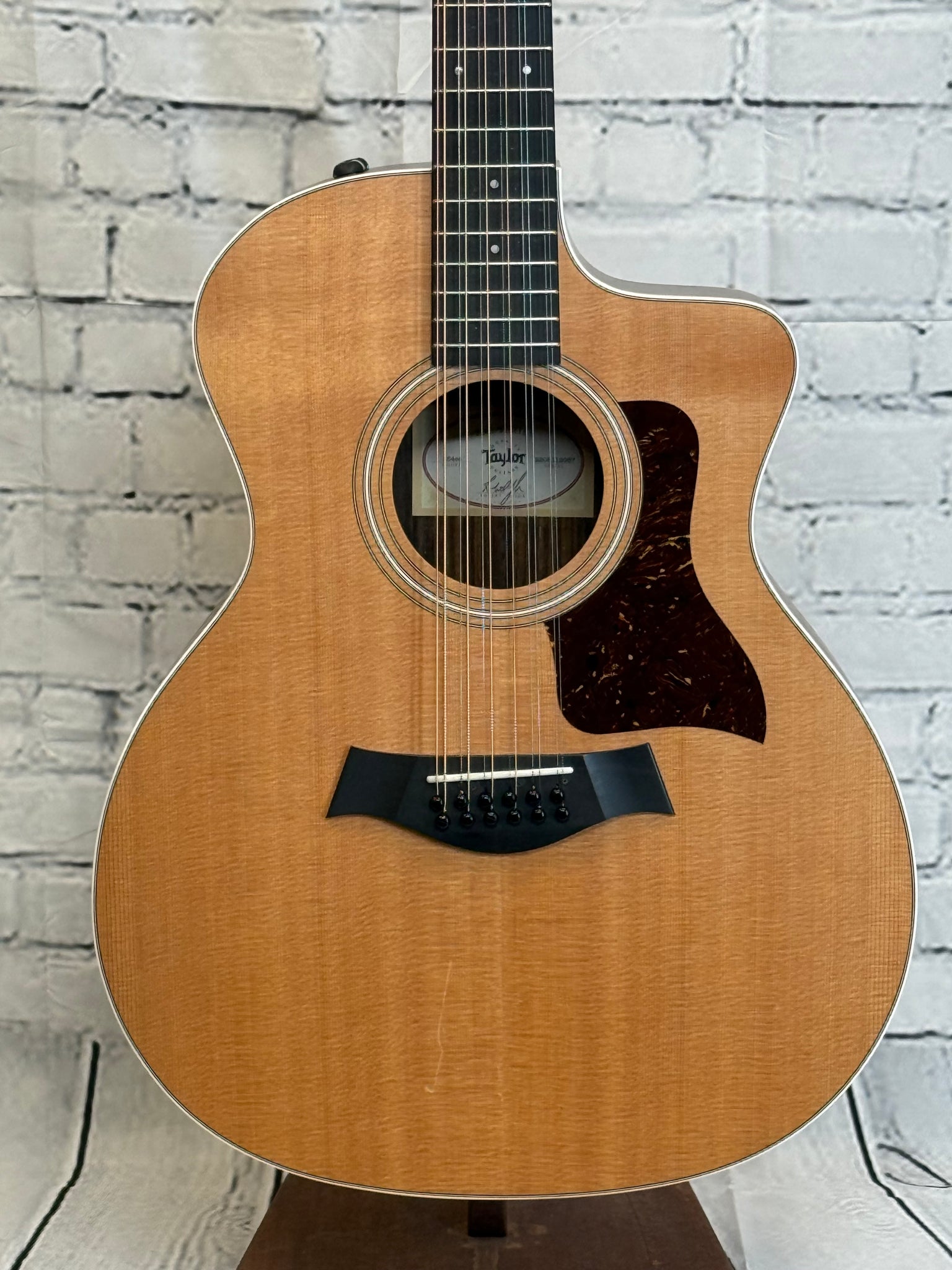 Used 2022 Taylor 254ce 12-string acoustic guitar can be an inspiring way to add new sounds and musical textures to your repertoire. The Taylor 254ce offers a full-voiced, octave-rich tone thanks to a solid Sitka spruce top that generates plenty of volume and projection, with layered rosewood for the back and sides. With the always-comfortable Taylor Neck and a Venetian cutaway, this Grand Auditorium provides an accessible playing experience for guitarists of all skill levels. And with built-in ES2 electronics and a sturdy padded gig bag, the 254ce is easy to plug in to an amp and take with you on the road.