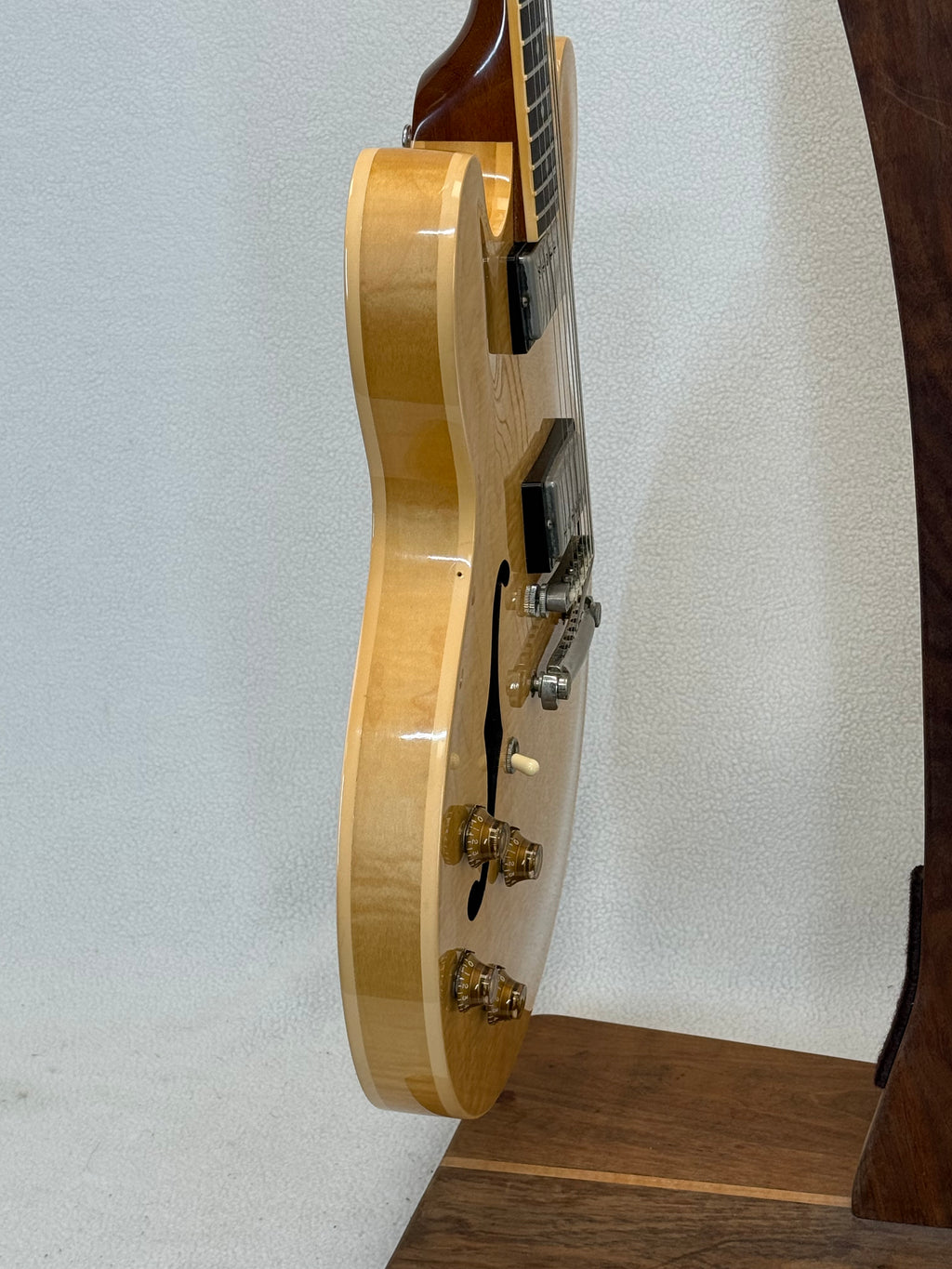 Used 2003 Gibson ES-335 Left Handed in players condition. Comes with a hardshell case that has a replacement handle.