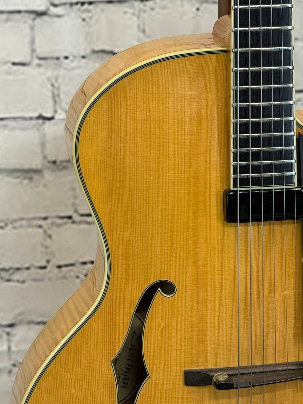 Used 2004 Eastman AR810-2 made for USC Guitar Professor Bruce Forman. The tailpiece has been upgraded. The input jack has been replaced. Comes with a non original hardshell case.
