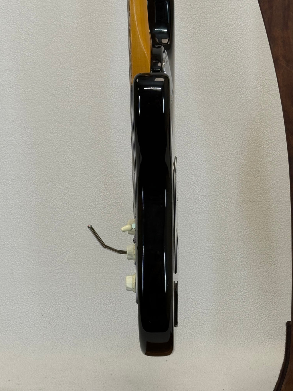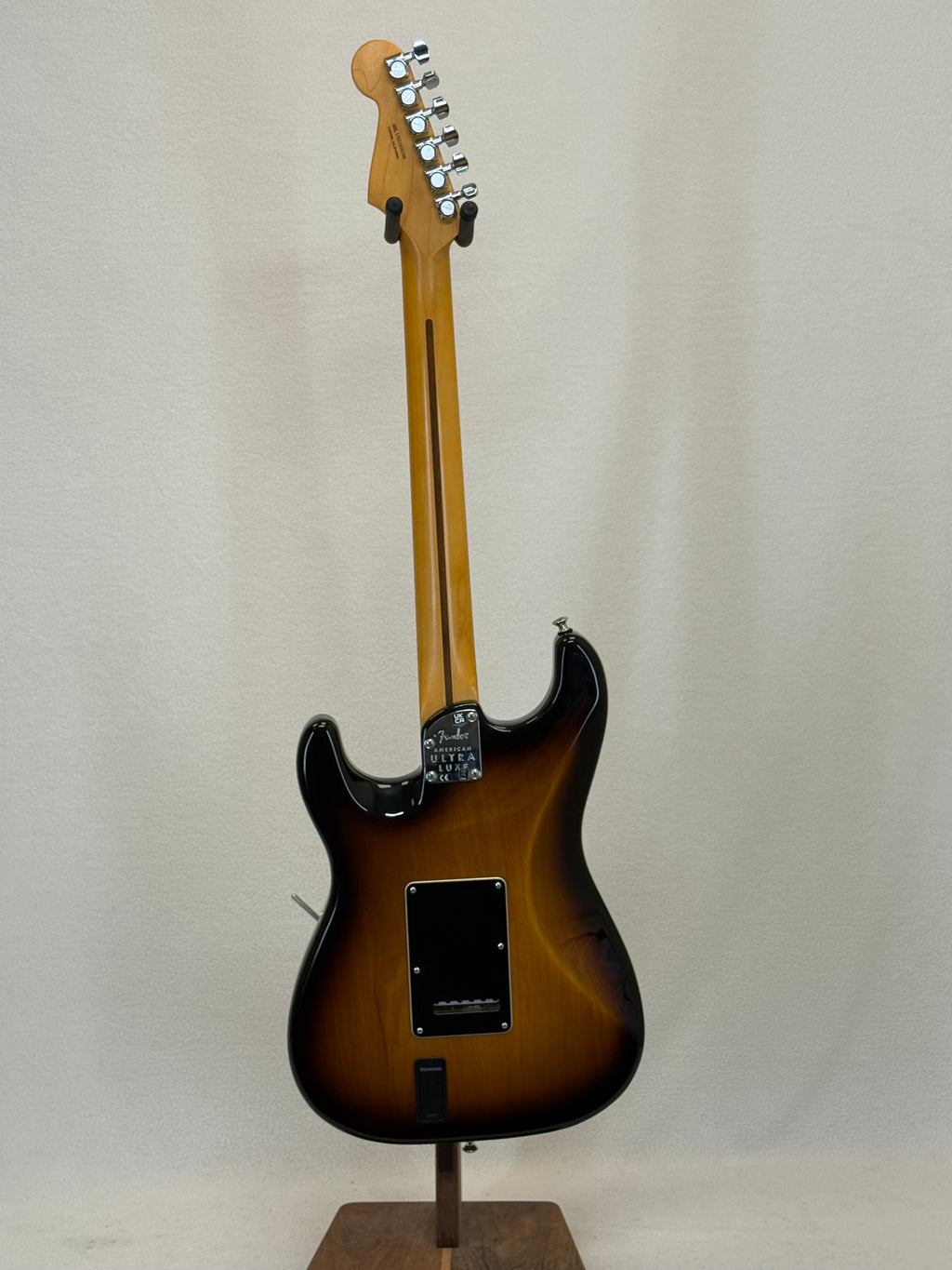 Used Fender American Ultra Luxe Stratocaster features a unique Augmented "D" neck profile with Ultra rolled fingerboard edges for endless playing comfort and a tapered neck heel that allows easy access to the highest register. A speedy 10"-14" compound-radius fingerboard with 22 stainless steel medium-jumbo frets means effortless and accurate soloing, while the Ultra Noiseless Vintage pickups and advanced wiring options provide endless tonal possibilities - without hum. Sculpted rear body contours are as beautiful as they are functional, supremely comfortable in any playing position. Other features include sealed locking tuning machines, chrome hardware and an upgrade bone nut. A battery box has been installed on the back but is not hooked up to anything. Comes with a hardshell case.