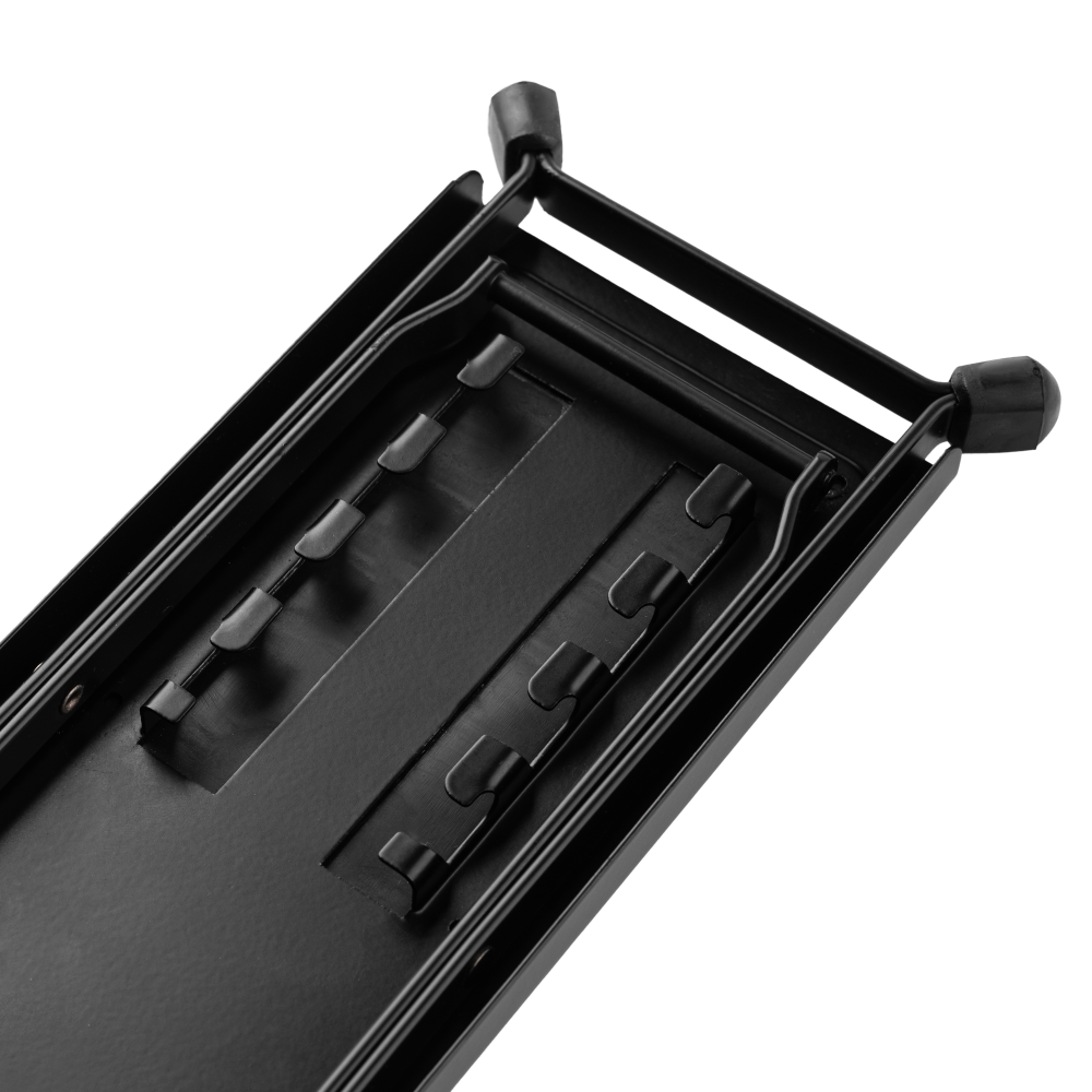 The Frameworks Guitar Footrest is the perfect companion for guitarists seeking ergonomic support during practice or performance. With a 5-position height adjustment ranging from 5″ to 9.5″ (12.7 – 24.1 cm), it allows you to find your ideal playing position, ensuring maximum comfort and control. Designed for convenience, this footrest folds flat, making it easy to store in your guitar case or gig bag when you’re on the go. The top surface features a rubber pad, providing enhanced comfort while you play, while the sturdy rubber feet prevent slippage and protect your floors from damage. Whether you’re performing on stage or practicing at home, this footrest delivers the perfect blend of comfort, stability, and portability.